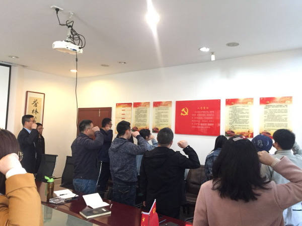 2019年4月12日下午3點,環(huán)科支部在公司一樓會議室召開3月份主題黨日活動。會議上,書記帶領全體黨員學習了《中國共產(chǎn)黨章程》總綱、習近平新時代中國特色社會主義思想第二十九講,《關于新形勢下黨內(nèi)政治生活的若干準則》第一章、新修訂《中國共產(chǎn)黨紀律處分條例》第六章、學習國家安全知識、習近平論黨風廉政建設和反腐敗斗爭系列講話的內(nèi)容。